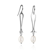 Nice slender shape. A flare on the bottom adds beautiful and elegant lines to the piece. white Pearl is just adorable. All silver used is solid 925 sterling silver. This design is also available with Peacock Gray Pearl, Pink Pearl and Purple Amethyst. Pearl is the birthstone of June.