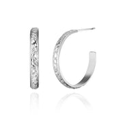 Hoop earrings are a must have for many women. Solid sterling silver wire was hand forged to a hoop shape. The wire is decorated with botanical patterns. Appropriate for any occasion. To view the matching necklaces in U-Collection, click here.