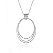 Three different size handmade oval hoops are hang from a spinner bail. Three spinning rings on the bail add subtle interest to the necklace. Nice contrast between highly polished smooth wires and twisted wires. Appropriate for any occasions. 30" chain and no clasp. One of the design from SPINNER collection.