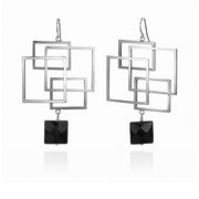 Looking for something dramatic? These black onyx square earrings might be the ones for you. Four different size squares soldered on top of each other create a feeling of dimension. Matching necklace is sold separately. To view a matching necklace, click here.